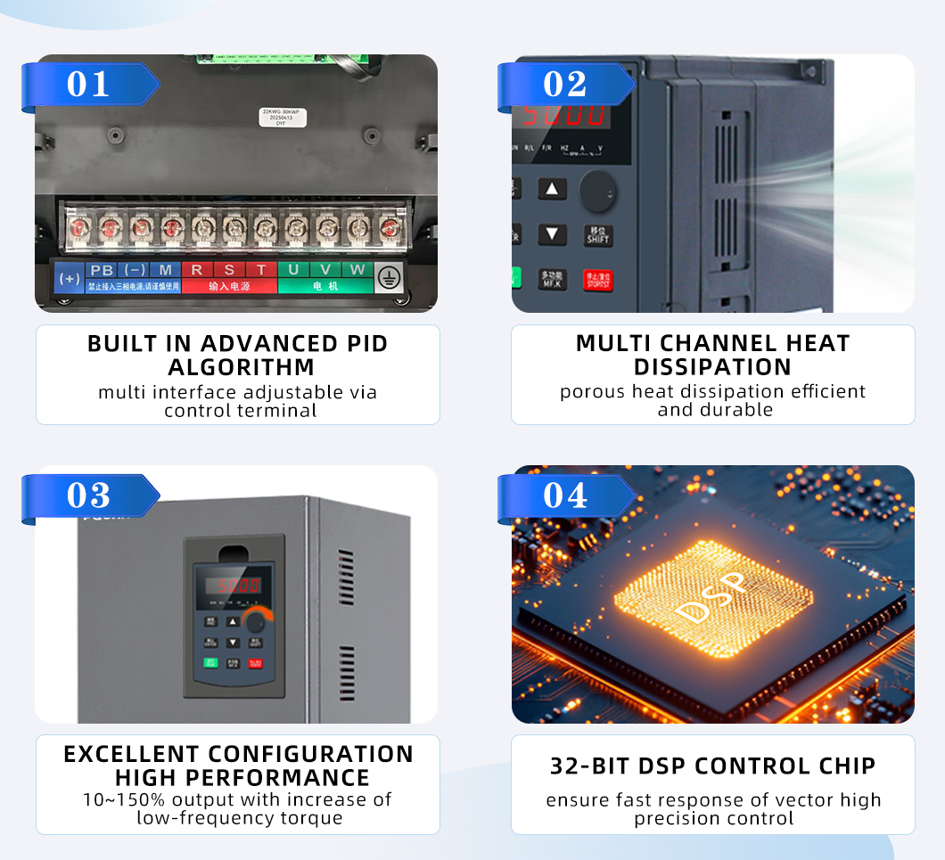 Se han tomado medidas de protección para el bloqueo de la bomba, el equilibrio trifásico, etc., que han prolongado la vida útil de la bomba y el controlador.